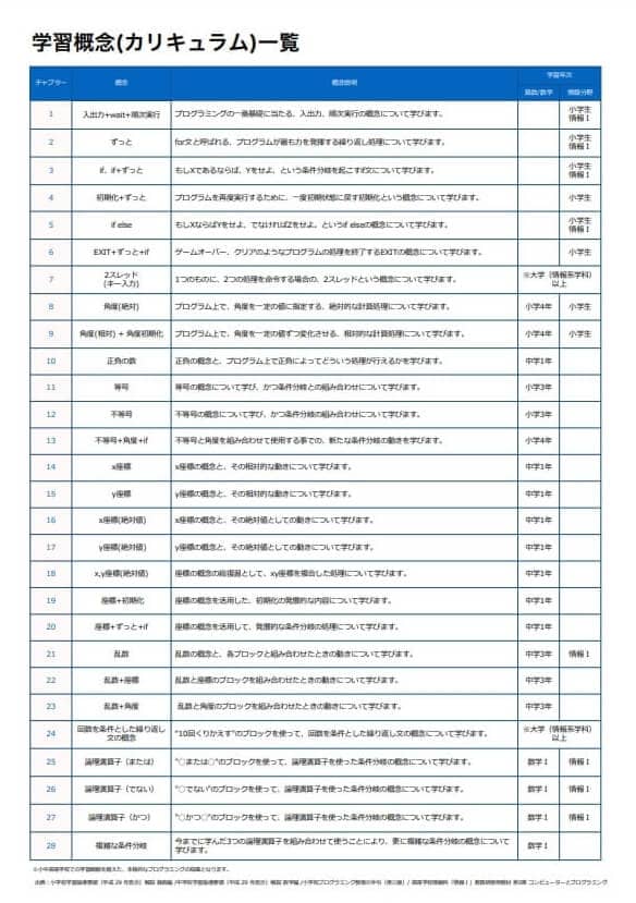 この学習カリキュラムを使って、中学生プログラミング学習を行います。